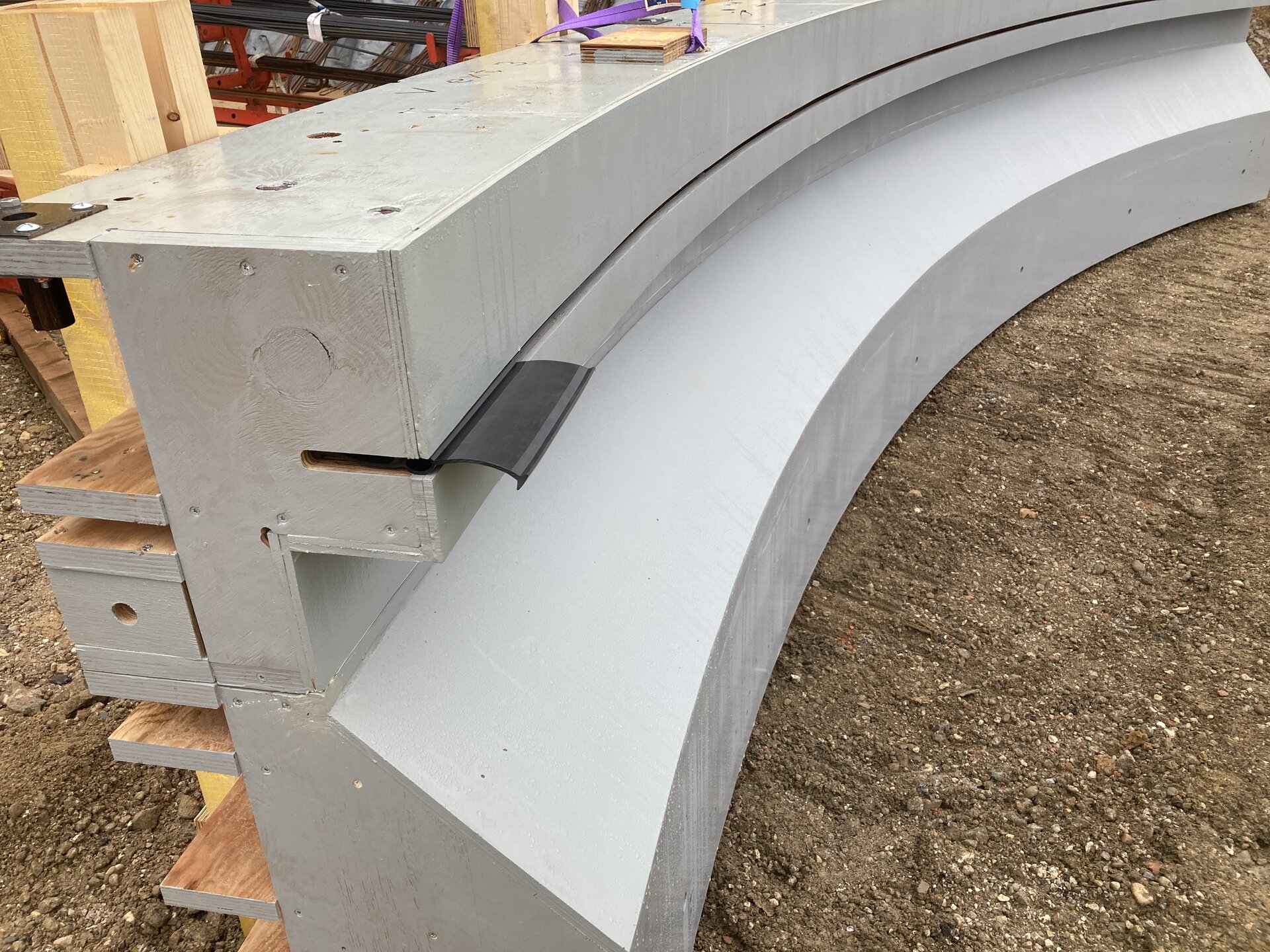 Cette réalisation a la particularité d'avoir nécessité une collaboration avec des partenaires pour la fourniture d'étanchéité courbe soudé s'intégrant dans leur coffrage circulaire.